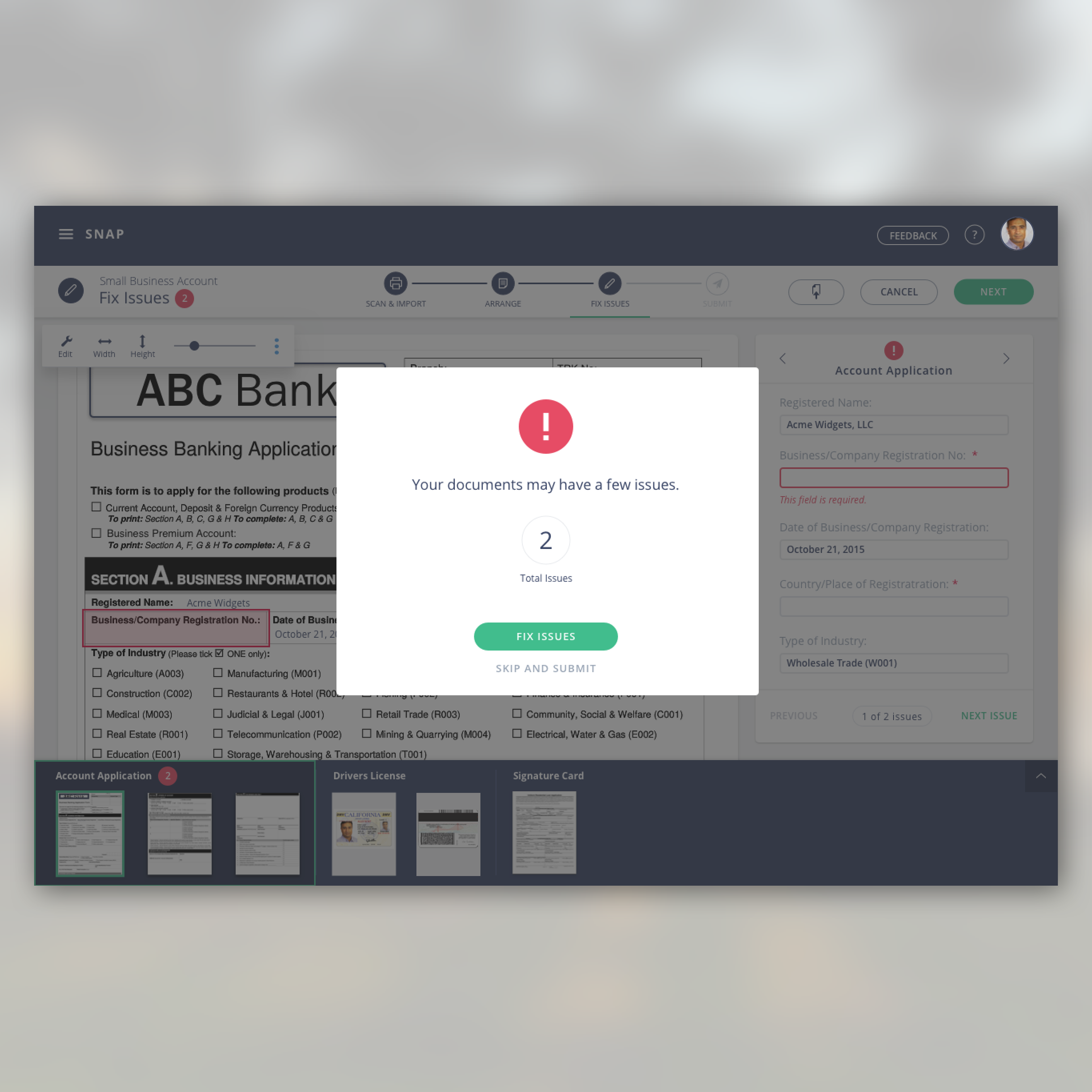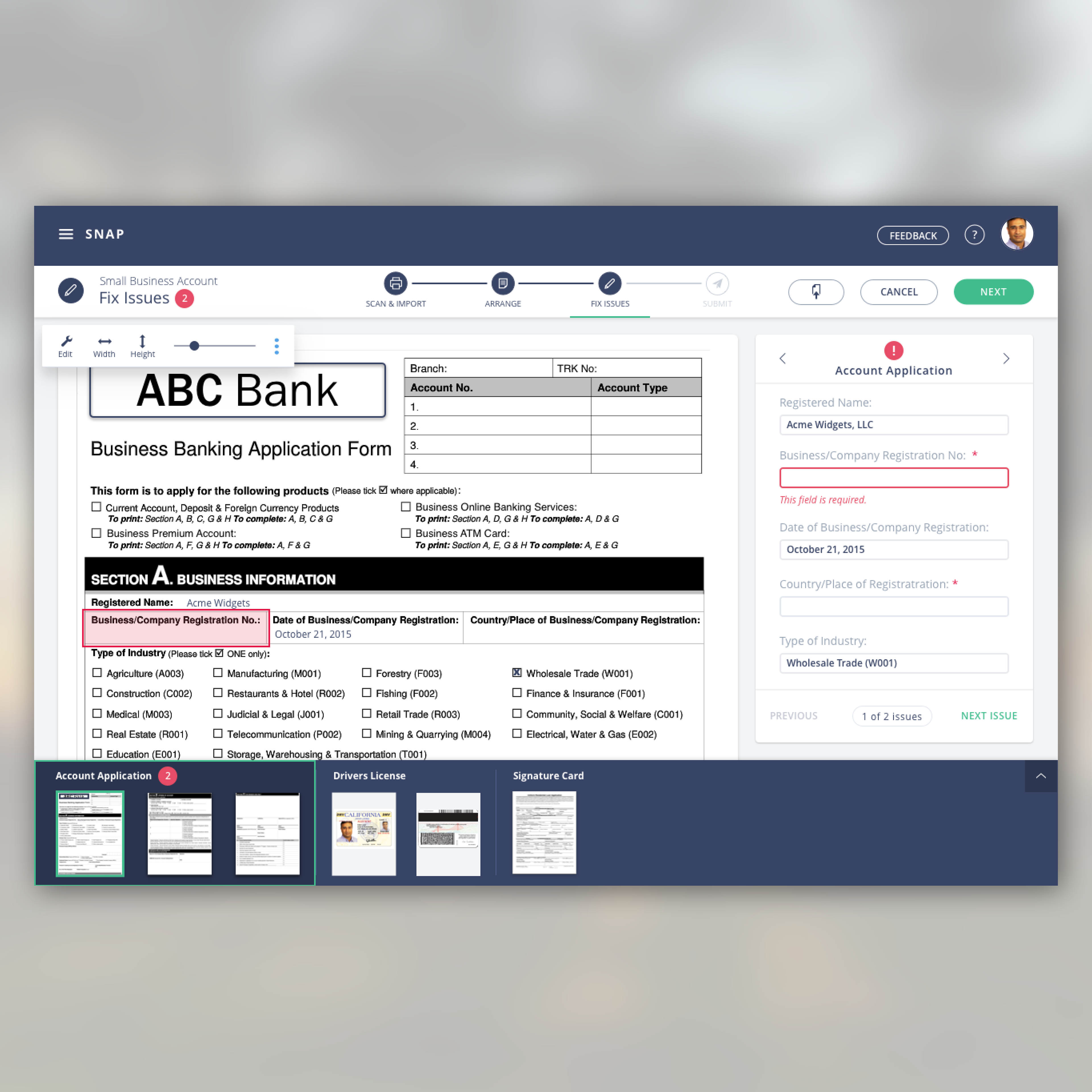 Opentext Intelligent Capture (formerly "Snap") and Captiva Identification focus on high-volume image capture workflows. The underlying platform classifies documents, extracts data, guides the user in correcting issues, and sends the whole package of content and metadata to a back-end system. This general workflow is used across multiple vertical industries from banking to manufacturing.